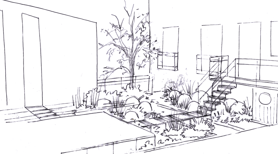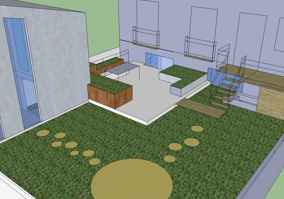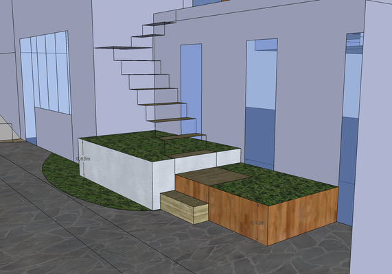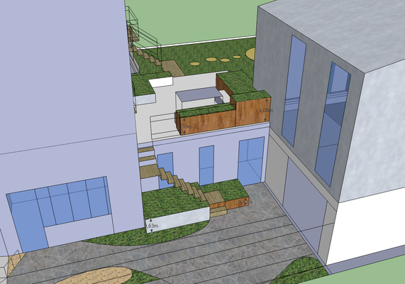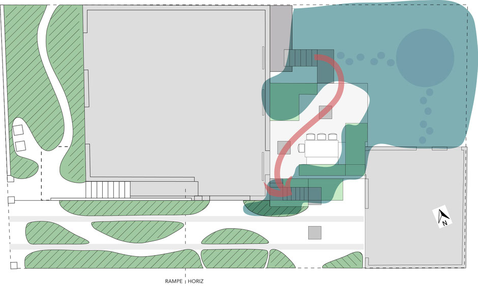 Nous profitons du projet d'extension et de rénovation de la maison pour imaginer le jardin comme un véritable environnement, un milieu dans lequel est posée la maison. Il nous faut repenser et unifier tous les espaces extérieurs et leur relation avec chaque étage de la maison. C'est un travail sur la verticalité et le jeu des niveaux pour suspendre, comme autant de cabanes, les étages. Une maison dans les arbres, en pleine ville!