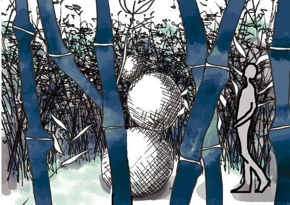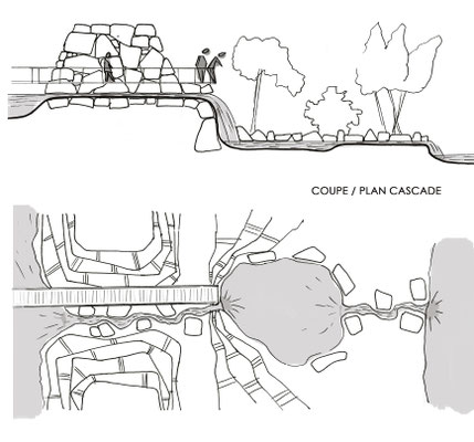 mouvement. C’est en modelant ces 2 forces que nous donnons forme au jardin. Une fois le système mis en place, les lignes, les contours, les pleins et les vides de l’espace se profilent.